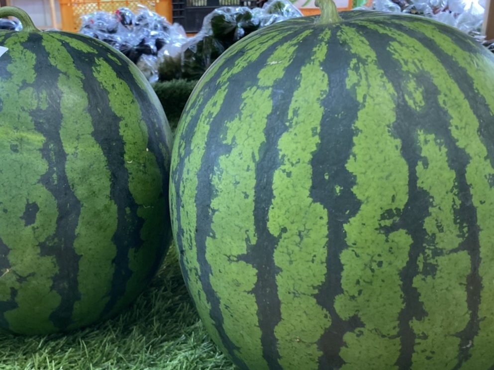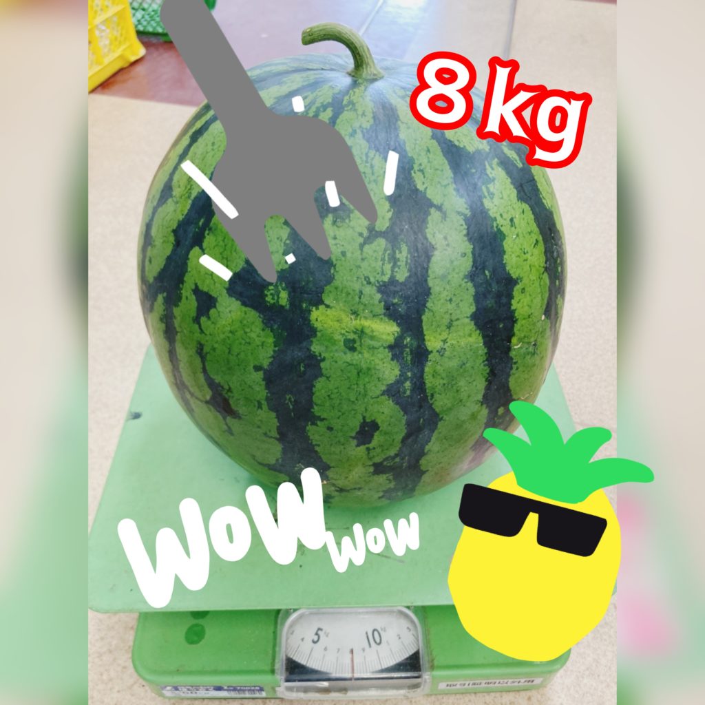 今年は、雨が多く日照不足で中々良いスイカが出来なかったそうです( TДT)