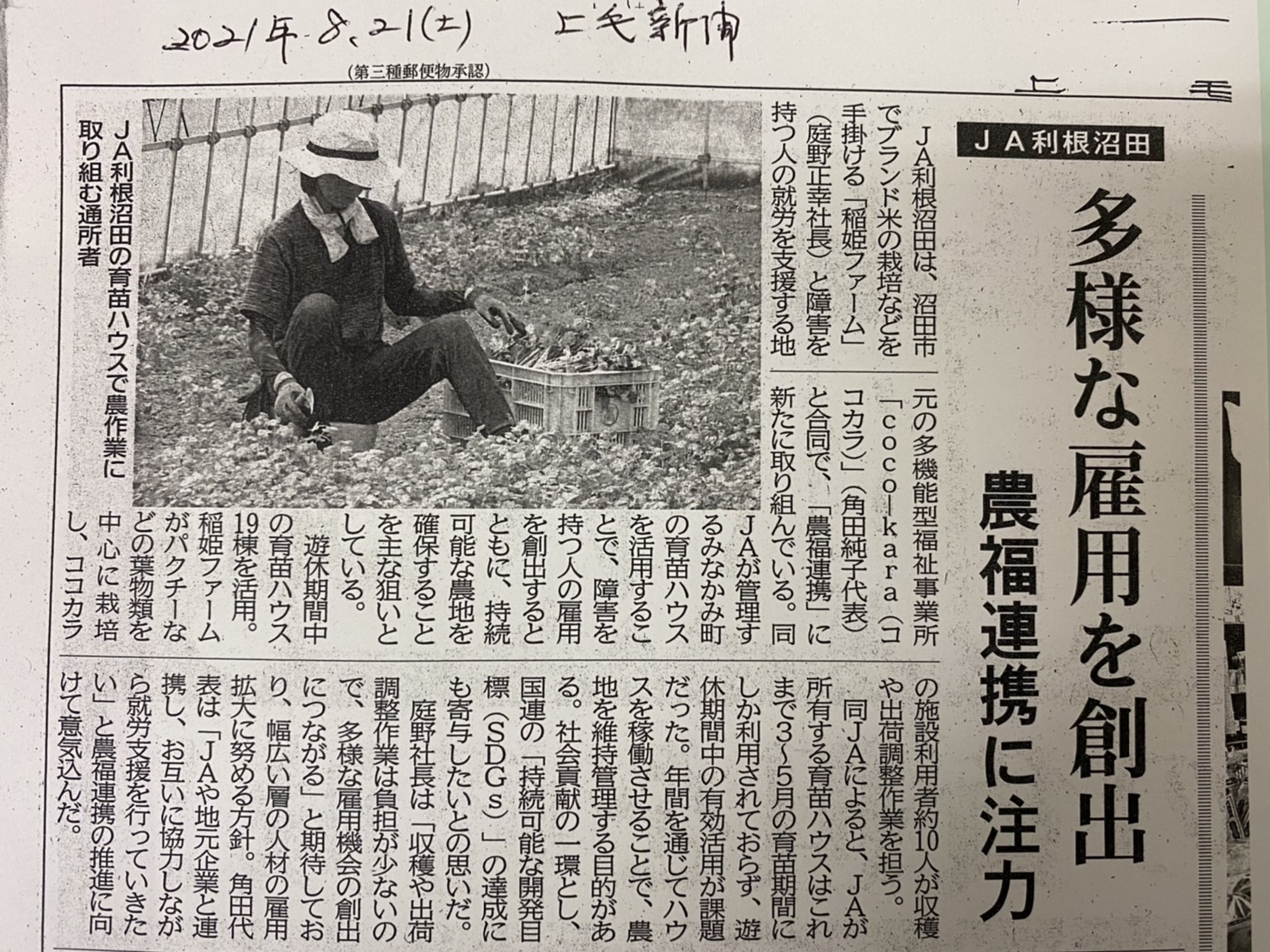 『農福連携』を通して地域と繋がり