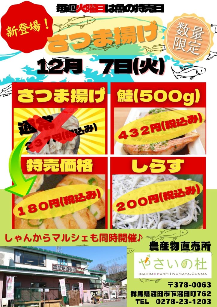 #稲姫ファーム #やさいの杜 #利根沼田 #沼田市 #野菜の直売所 #観光地にある直売所 #野菜のネット販売 #稲姫 #米 #魚の特売日 #しゃんからマルシェ